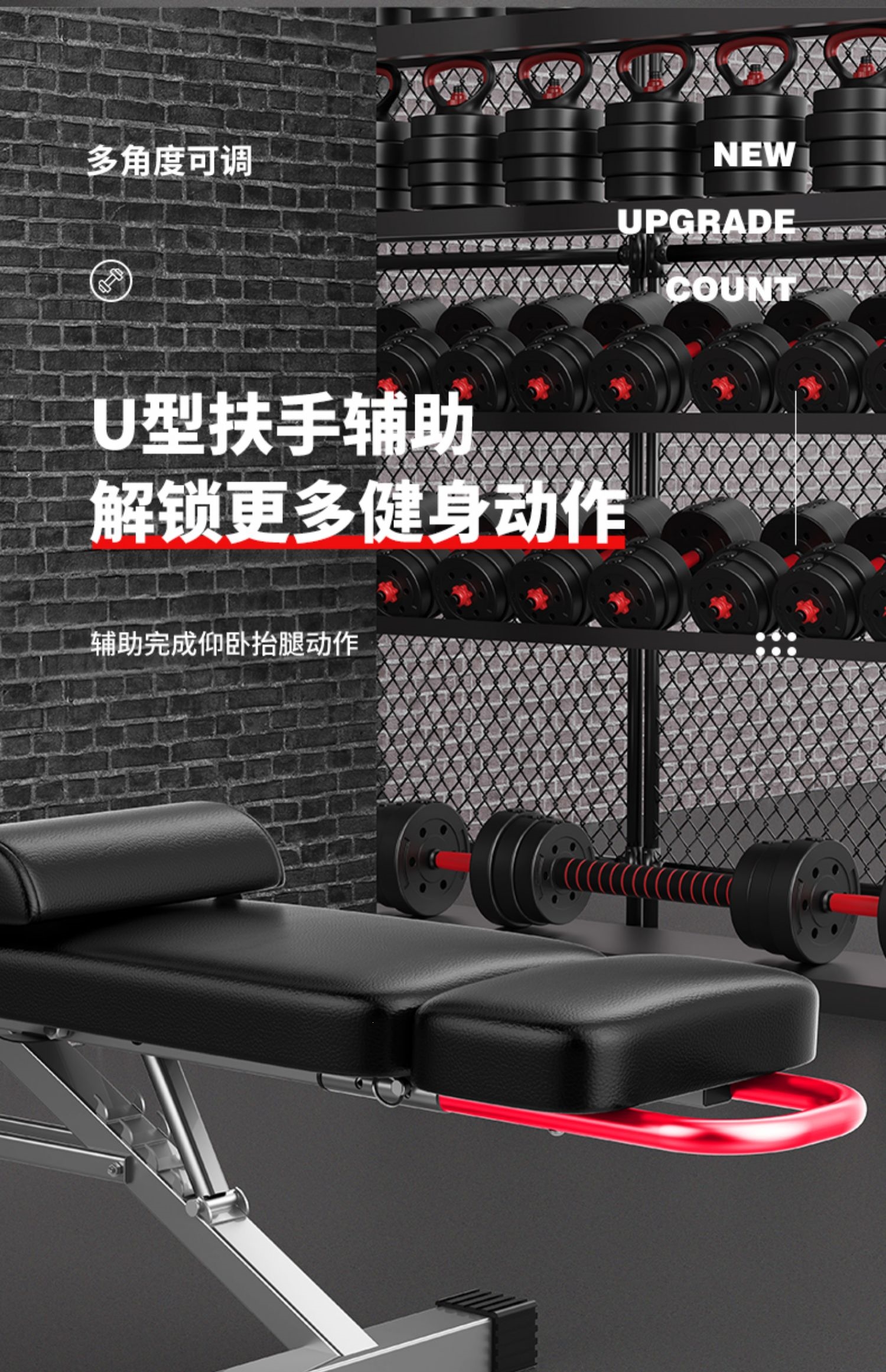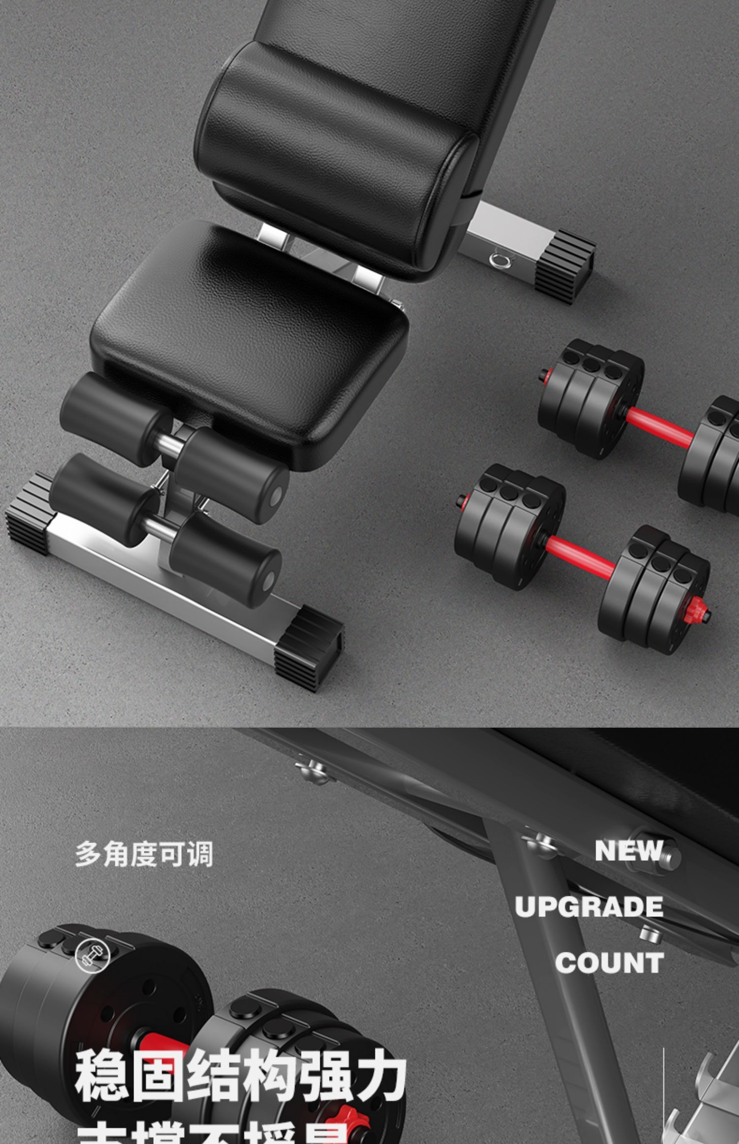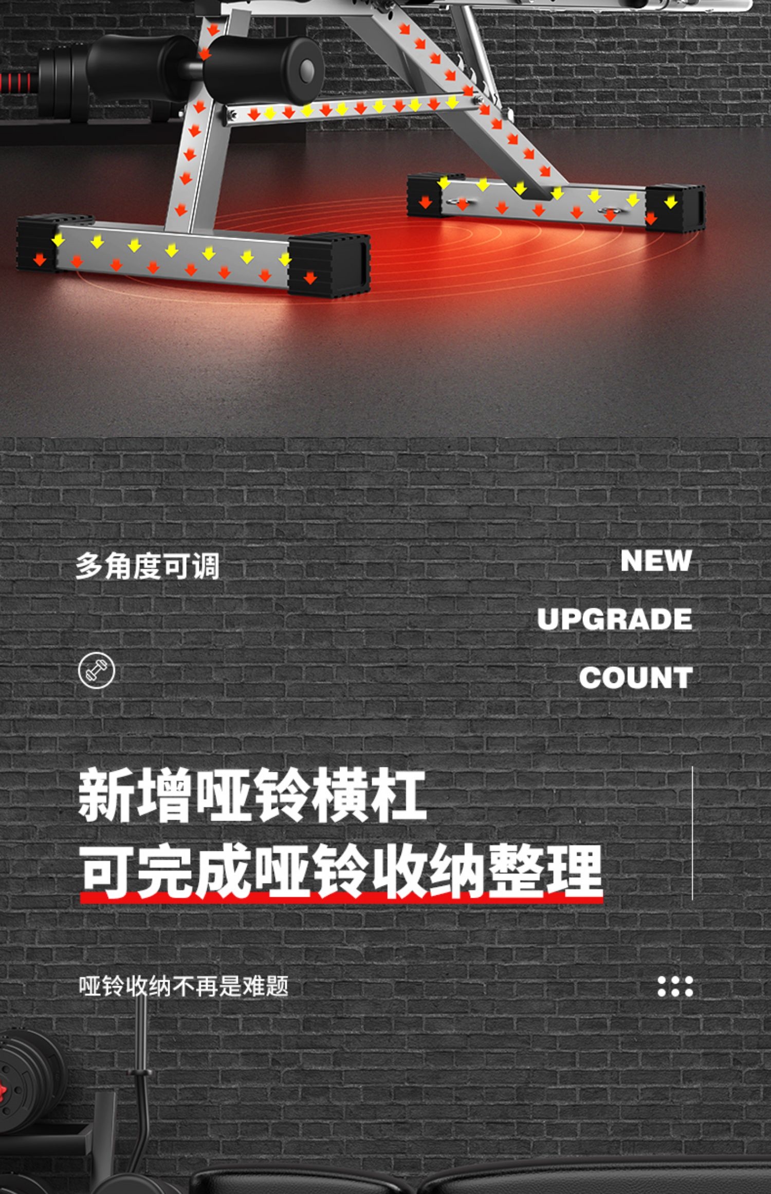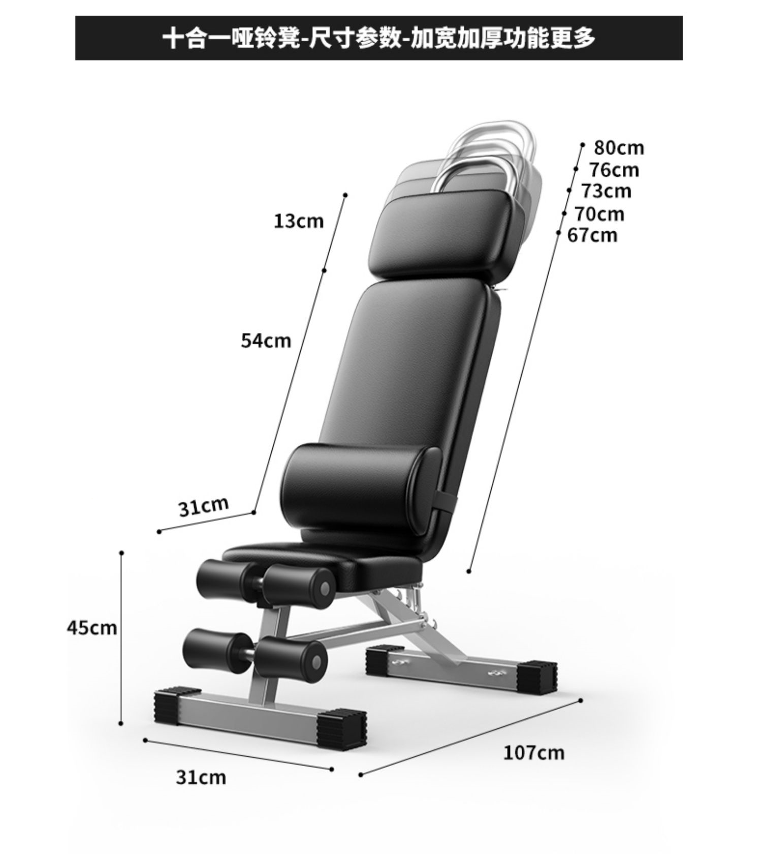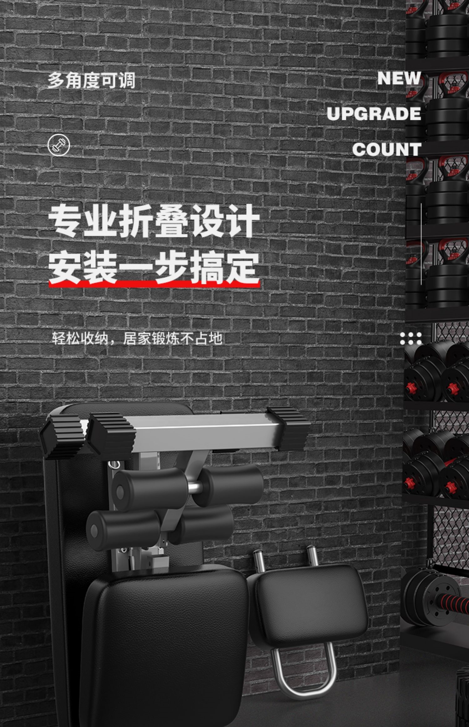 邦可臣哑铃凳折叠仰卧板起坐辅助器健身器材家用椅子多功能锻炼板卧推凳男--加强8合1加长头枕全折叠加粗加宽加厚