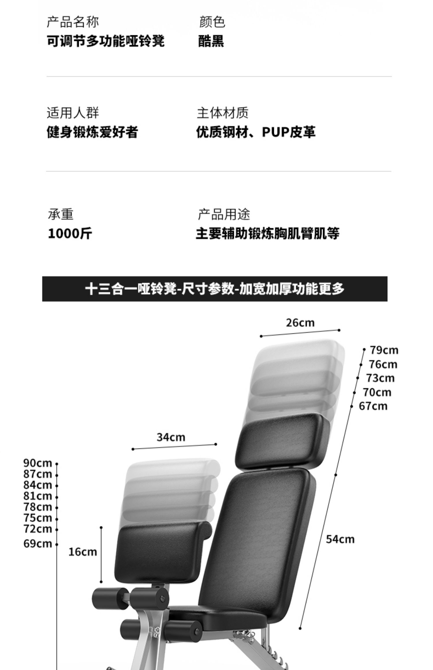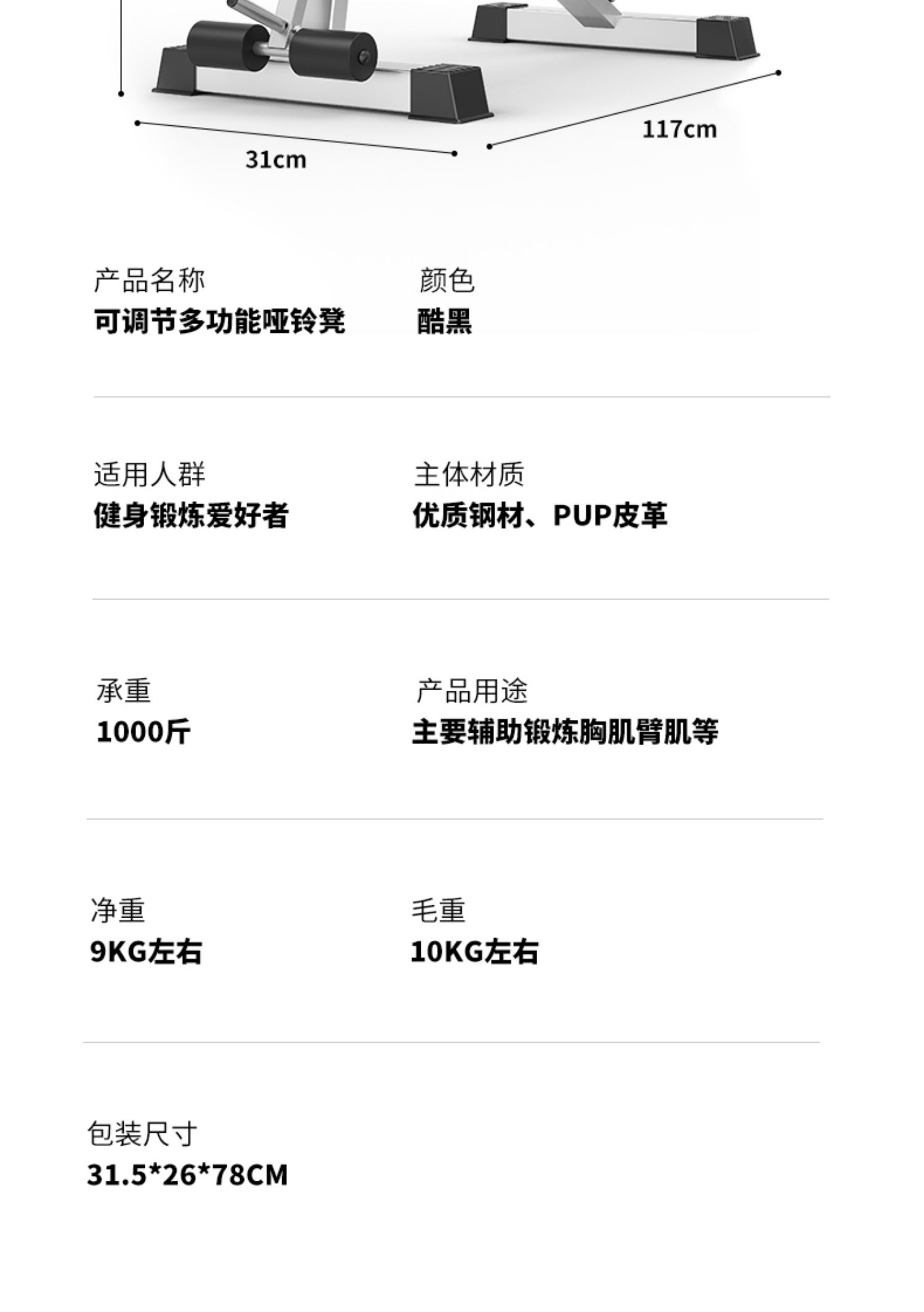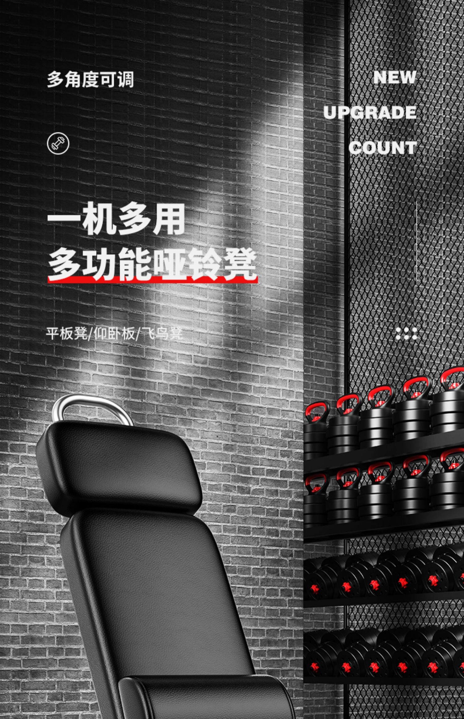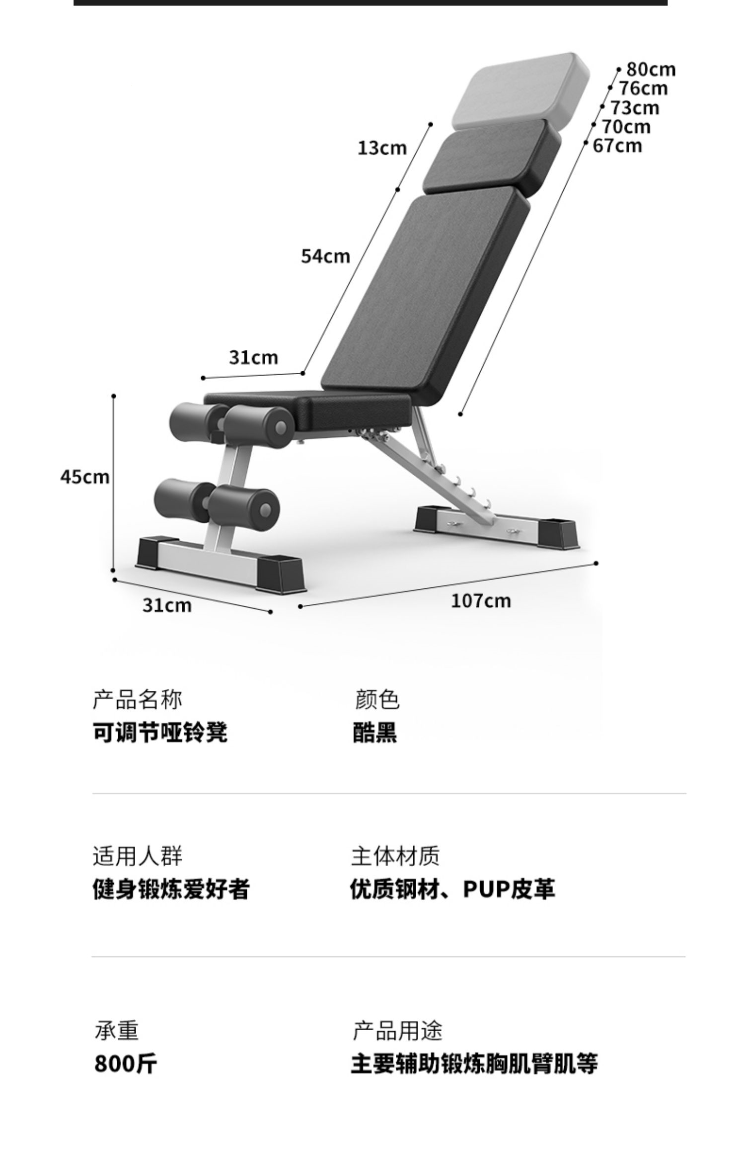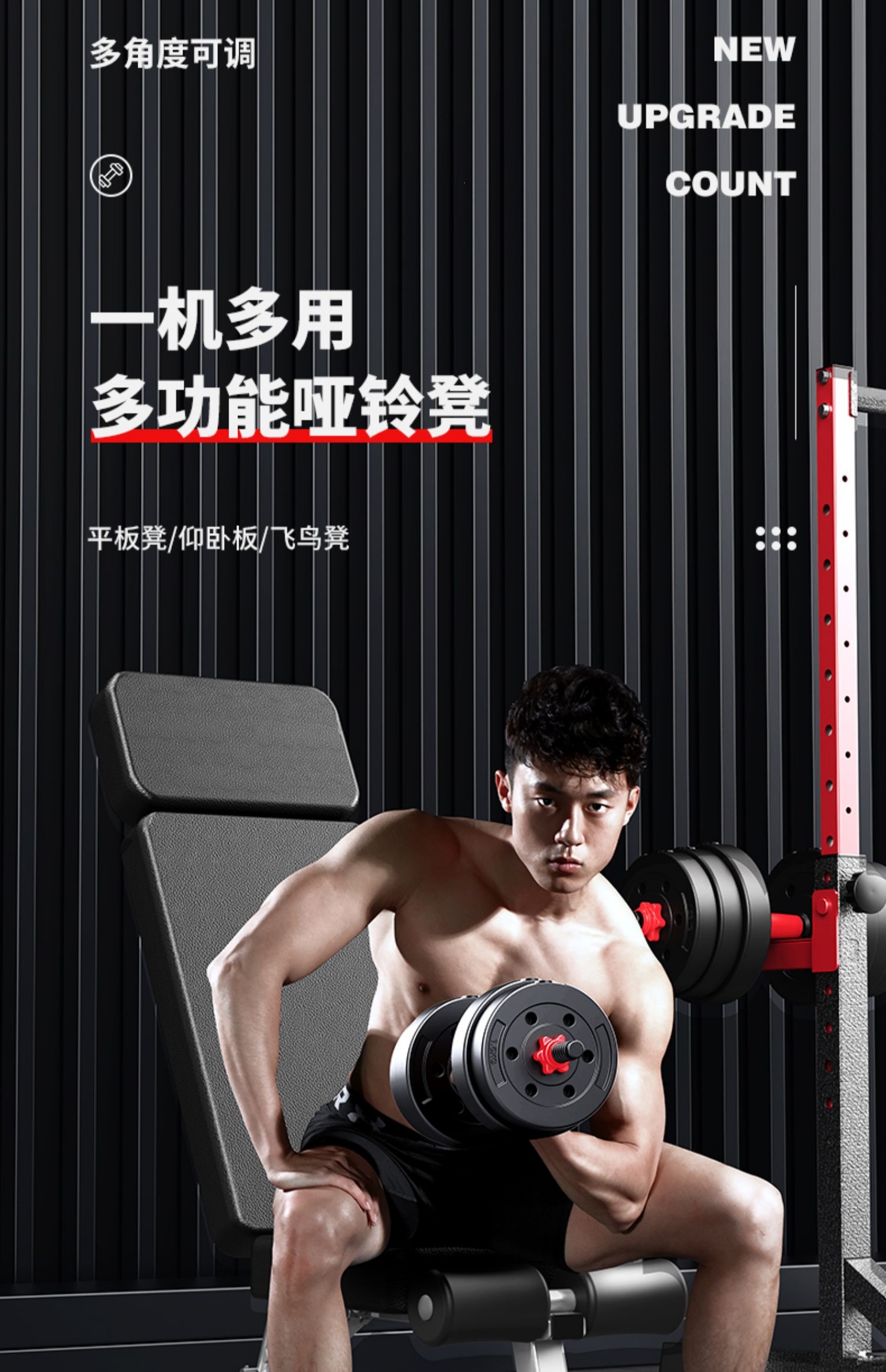 邦可臣哑铃凳折叠仰卧板起坐辅助器健身器材家用椅子多功能锻炼板卧推凳男--加强8合1加长头枕全折叠加粗加宽加厚