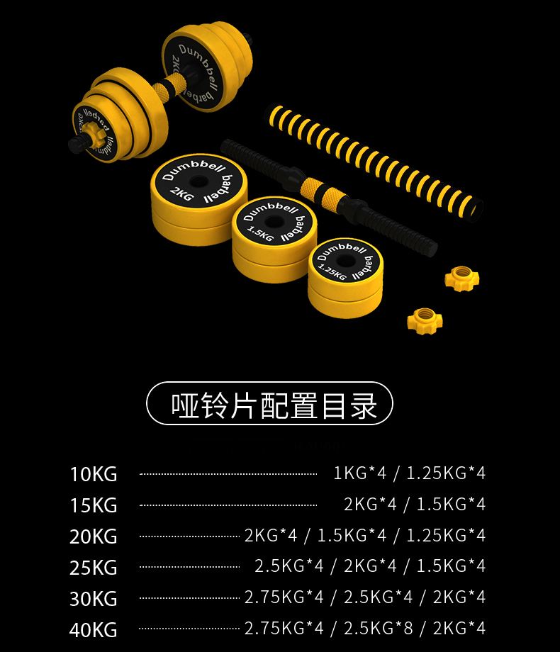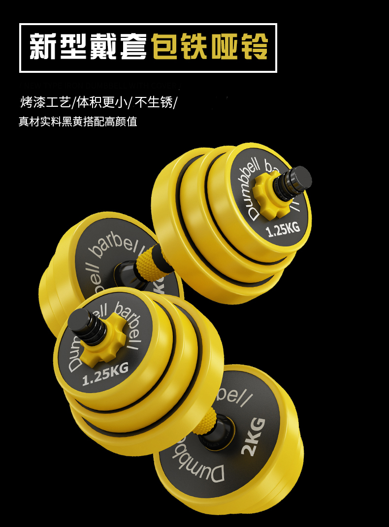 哑铃包铁哑铃家用男士健身器材一对20kg30女可调节重量闪电客亚铃杠铃套装